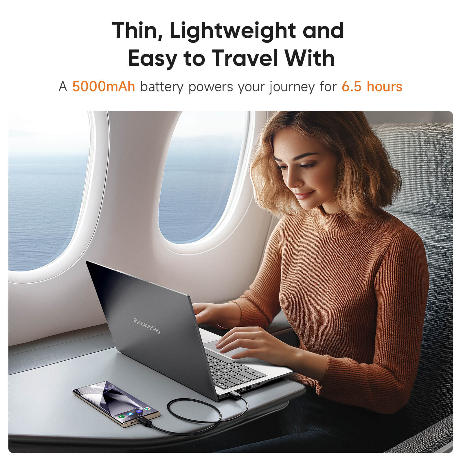 • Batería Integrada: Equipado con una batería de 5000 mAh, ofrece hasta 6 horas de uso sin necesidad de energía externa.