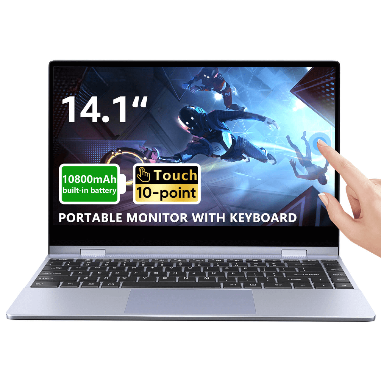 Station d'accueil portable à écran tactile 1080p de 14,1 pouces avec batterie 10800 mAh et clavier