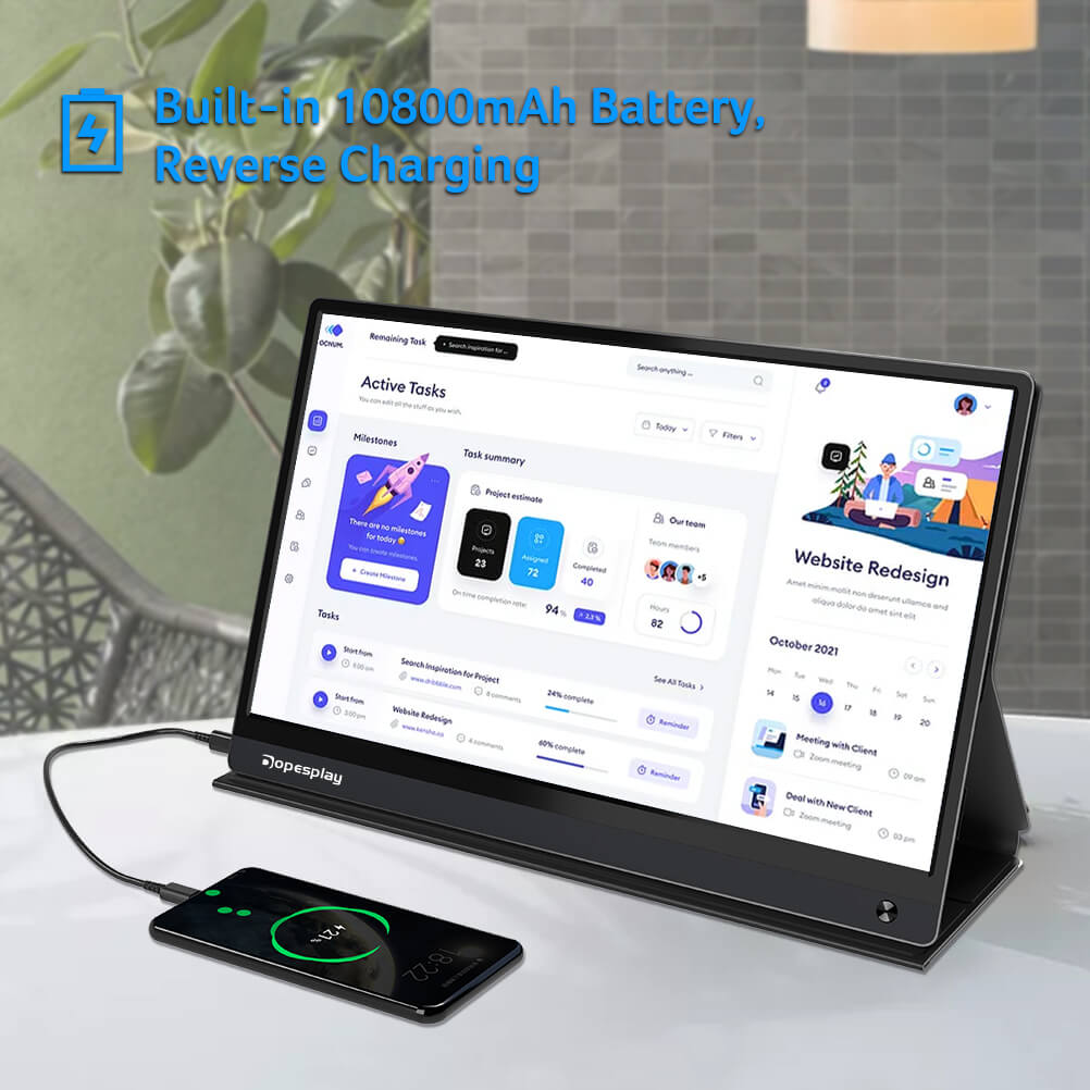 このモニターは持ち運びやすいだけでなく、利便性も抜群です。どんなデバイスや接続方法を使っても、瞬時に適応します。つまり、プラグを差し込むだけですぐに作業を開始できます。スマートフォンやノートパソコンで会議を開始し、接続が切れたり遅延したりすることなく、モニターに切り替えられます。大きな画面とアクセス性を求めてオフィスに行く必要はありません。このタッチスクリーンのポータブルモニターで、すべてが可能です。