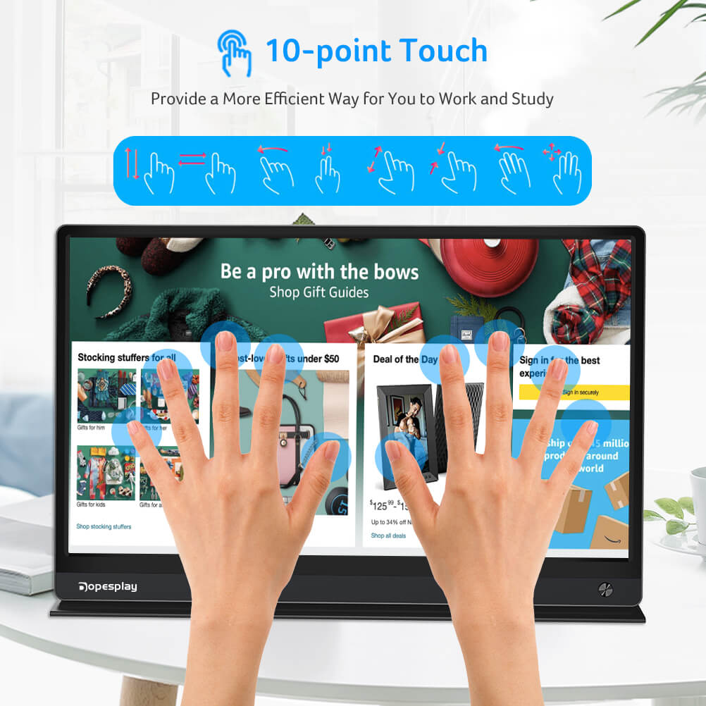 15.6インチ1080Pタッチスクリーンポータブルモニター(ラップトップ用)で、仕事、ゲーム、エンターテイメント体験を向上させましょう。反応性の高い10点タッチスクリーン、内蔵10800mAhバッテリー、さまざまなデバイスとの広範な互換性を備えたこのポータブルモニターは、プロフェッショナル、ゲーマー、旅行者に最適です。