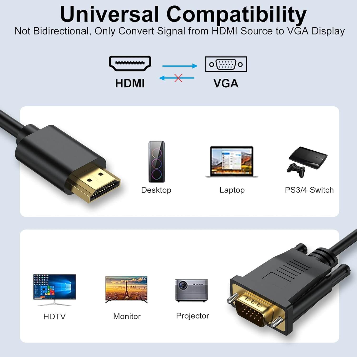 Adaptador de cabo HDMI para VGA – Full HD 1080p, design compacto, ampla compatibilidade